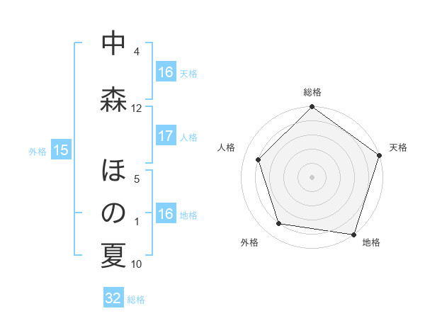 中森 ほの夏さんを姓名の画数から五運を鑑定