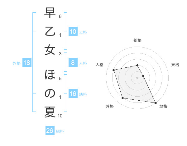 早乙女 ほの夏さんを姓名の画数から五運を鑑定
