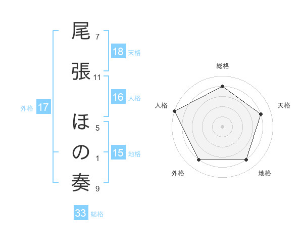 尾張 ほの奏さんを姓名の画数から五運を鑑定
