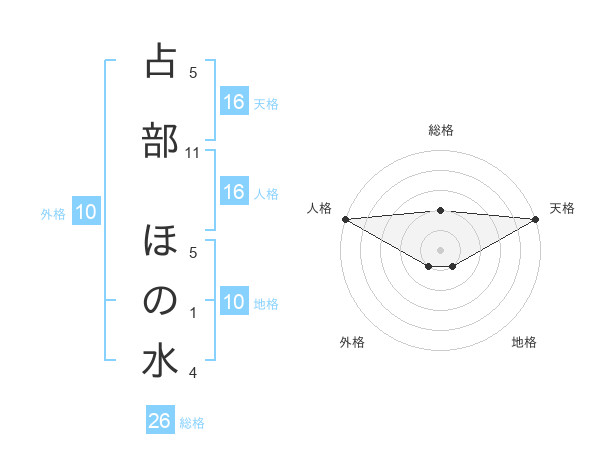 占部 ほの水さんを姓名の画数から五運を鑑定