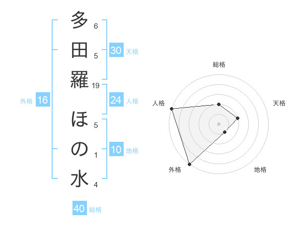 多田羅 ほの水さんを姓名の画数から五運を鑑定