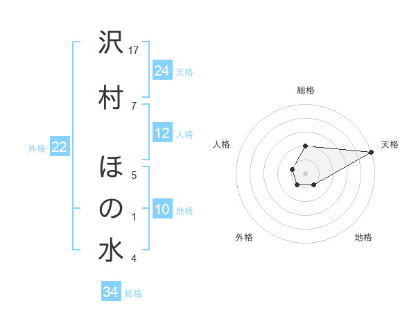 沢村 ほの水さんを姓名の画数から五運を鑑定