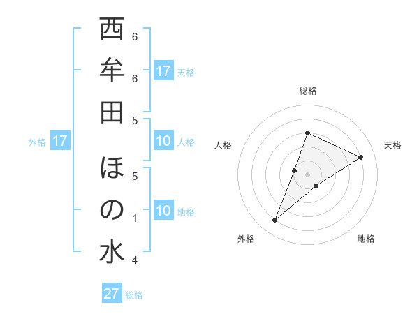 西牟田 ほの水さんを姓名の画数から五運を鑑定