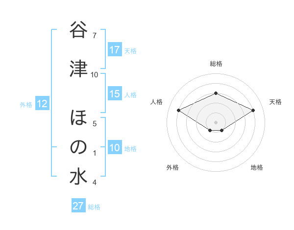 谷津 ほの水さんの総格は27画の3点!