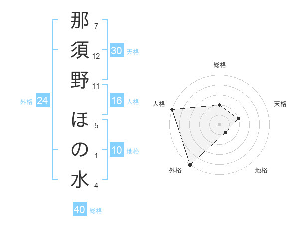 那須野 ほの水さんの外格は24画の5点!
