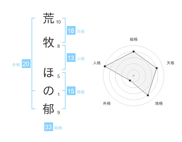 荒牧 ほの郁さんを姓名の画数から五運を鑑定