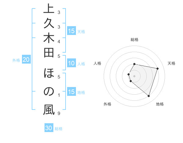上久木田 ほの風さんを姓名の画数から五運を鑑定