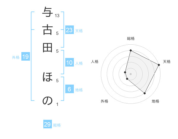 与古田 ほのさんを姓名の画数から五運を鑑定