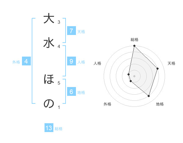 大水 ほのさんの総格は13画の5点!