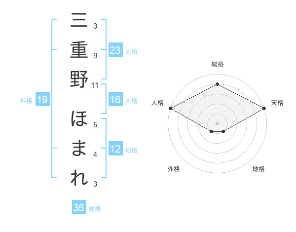 三重野 ほまれさんの総格は35画の4点!