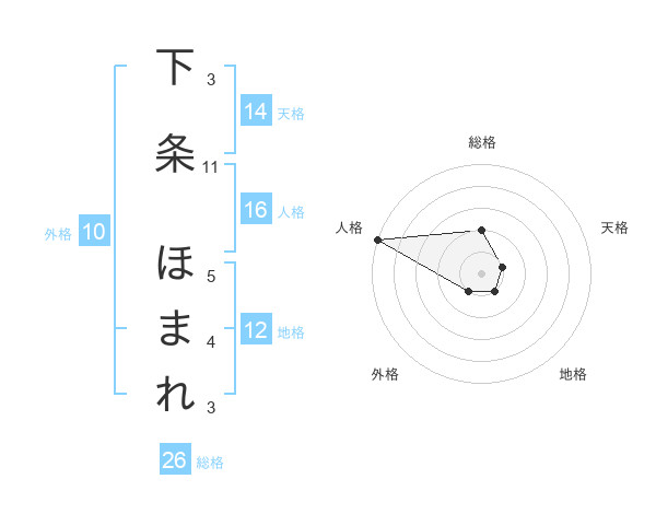 下条 ほまれさんを姓名の画数から五運を鑑定