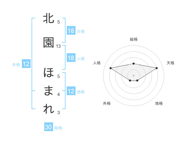 北園 ほまれさんを姓名の画数から五運を鑑定