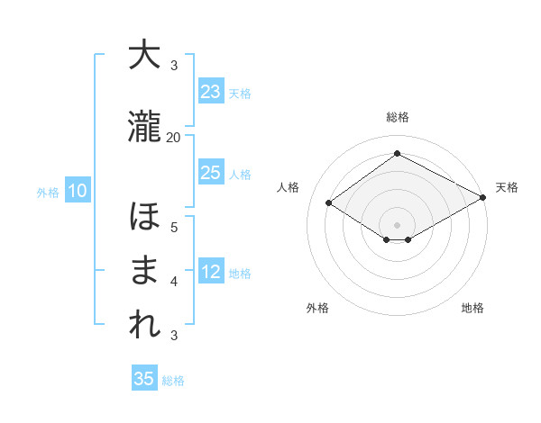 大瀧 ほまれさんを姓名の画数から五運を鑑定