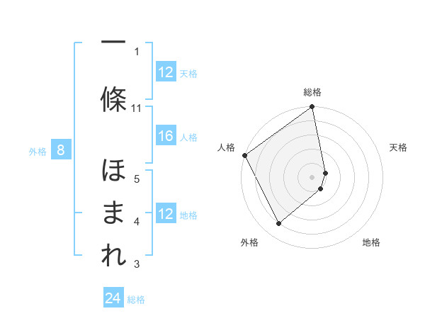 一條 ほまれさんを姓名の画数から五運を鑑定