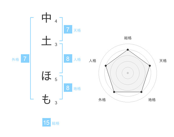 中土 ほもさんの総格は15画の4点!