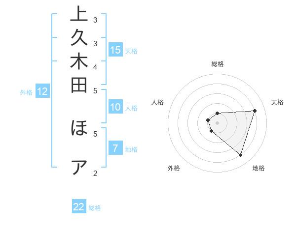 上久木田 ほアさんを姓名の画数から五運を鑑定