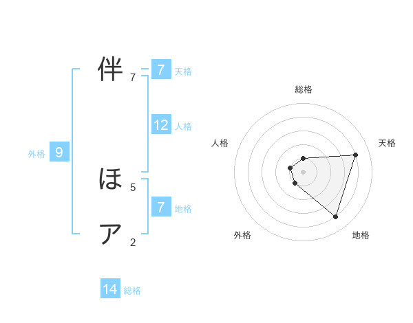 伴 ほアさんの総格は14画の1点!