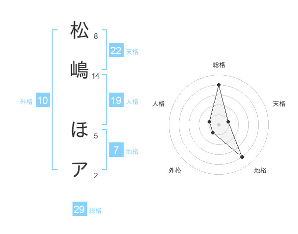 松嶋 ほアさんを姓名の画数から五運を鑑定