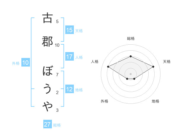 古郡 ぼうやさんの総格は27画の3点!