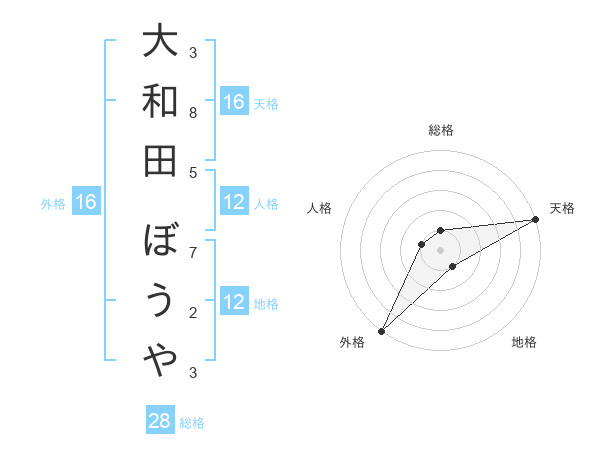 大和田 ぼうやさんを姓名の画数から五運を鑑定