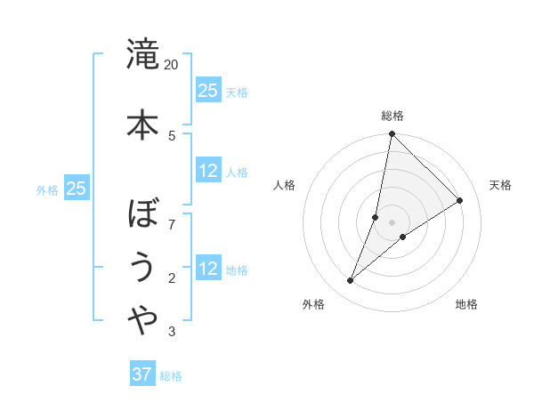 滝本 ぼうやさんの総格は37画の5点!