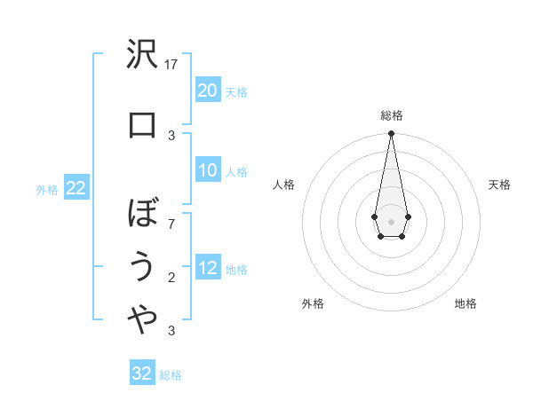 沢口 ぼうやさんを姓名の画数から五運を鑑定