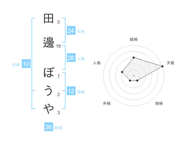 田邊 ぼうやさんの天格は24画の5点!