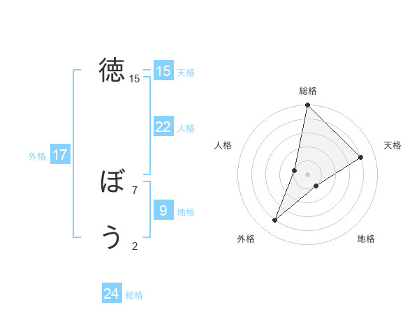 徳 ぼうさんの総格は24画の5点!