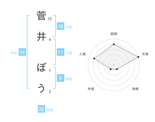 菅井 ぼうさんの天格は16画の5点!