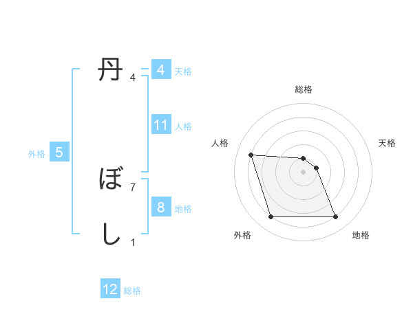 丹 ぼしさんの総格は12画の1点!