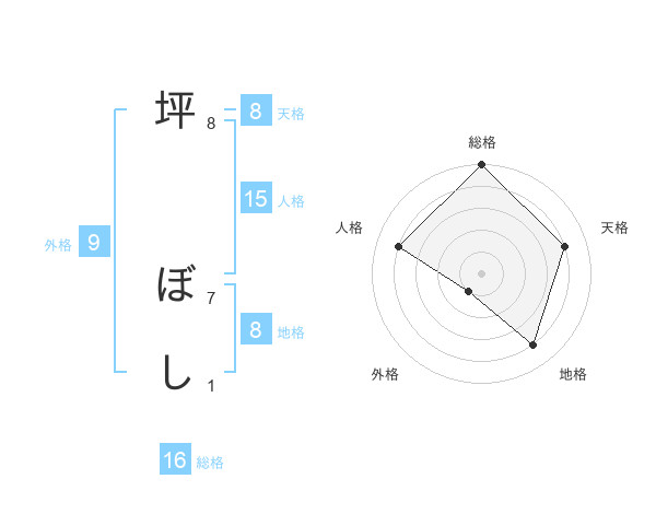 坪 ぼしさんの総格は16画の5点!