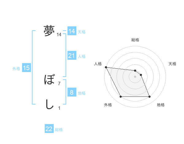 夢 ぼしさんの総格は22画の1点!
