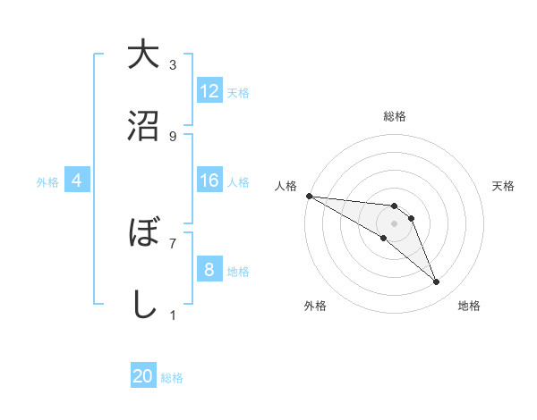 大沼 ぼしさんの天格は12画の1点