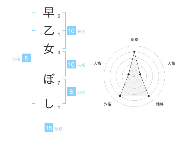早乙女 ぼしさんの総格は18画の4点