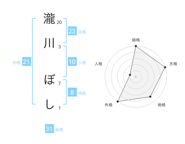 瀧川 ぼしさんを姓名の画数から五運を鑑定