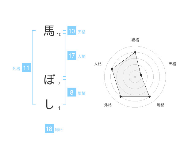 馬 ぼしさんの総格は18画の4点!