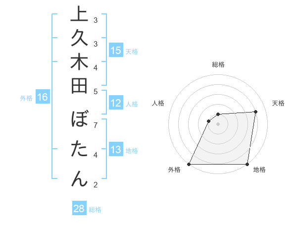 上久木田 ぼたんさんを姓名の画数から五運を鑑定