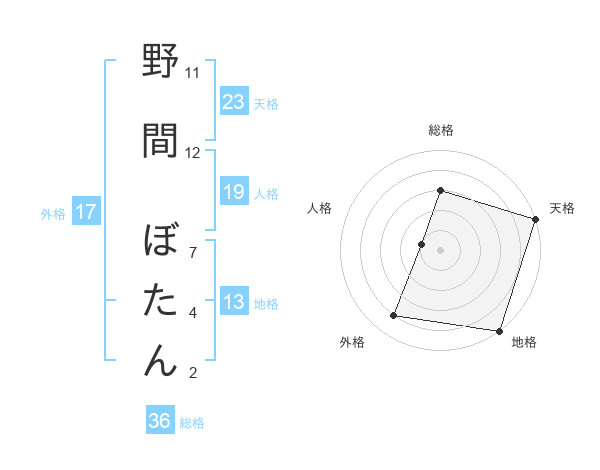 野間 ぼたんさんを姓名の画数から五運を鑑定