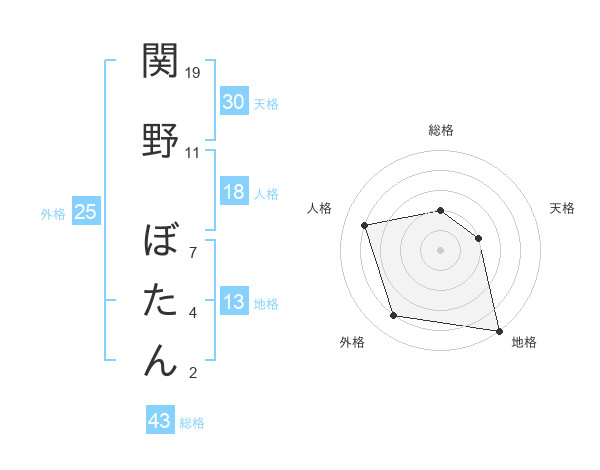 関野 ぼたんさんを姓名の画数から五運を鑑定