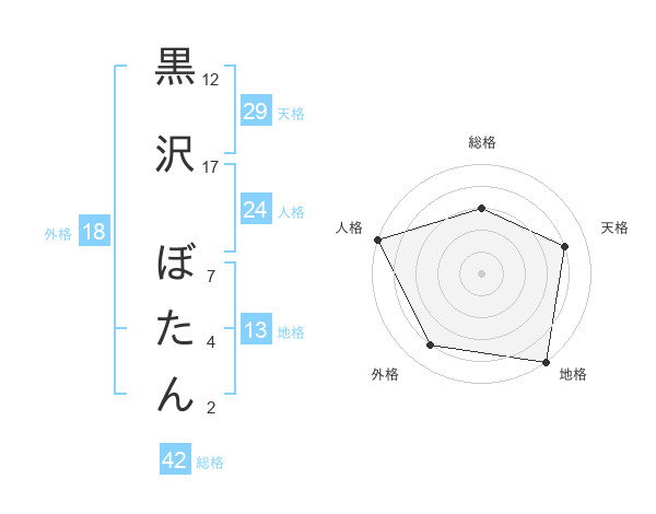 黒沢 ぼたんさんを姓名の画数から五運を鑑定