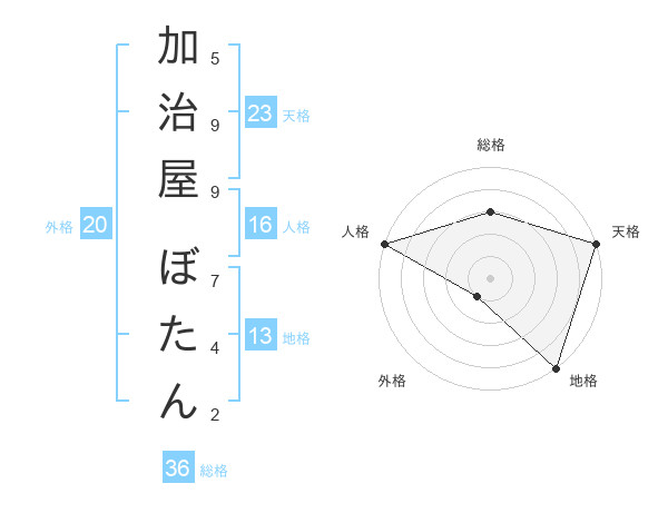 加治屋 ぼたんさんを姓名の画数から五運を鑑定