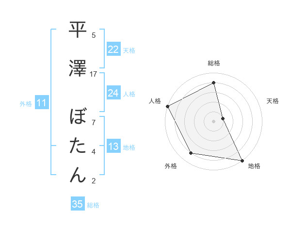 平澤 ぼたんさんの天格は22画の1点!