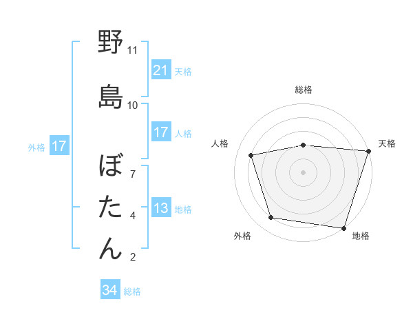 野島 ぼたんさんを姓名の画数から五運を鑑定