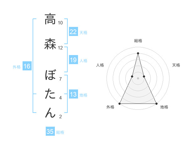 高森 ぼたんさんの総格は35画の4点!