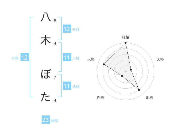 八木 ぼたさんを姓名の画数から五運を鑑定