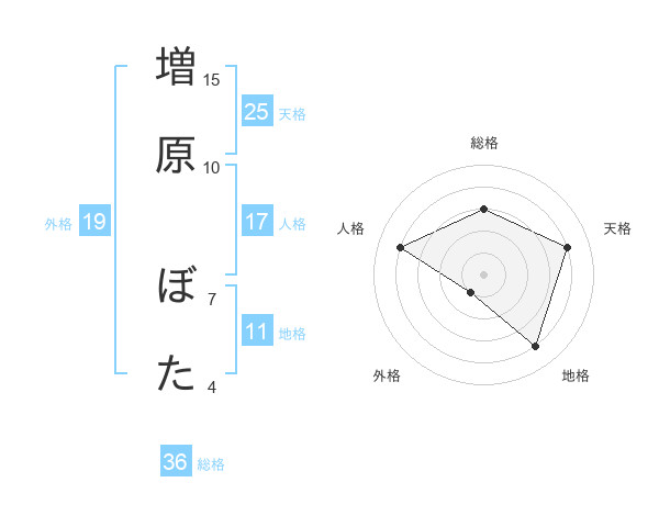 増原 ぼたさんを姓名の画数から五運を鑑定