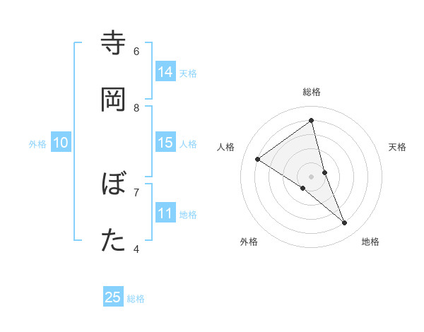 寺岡 ぼたさんの総格は25画の4点!
