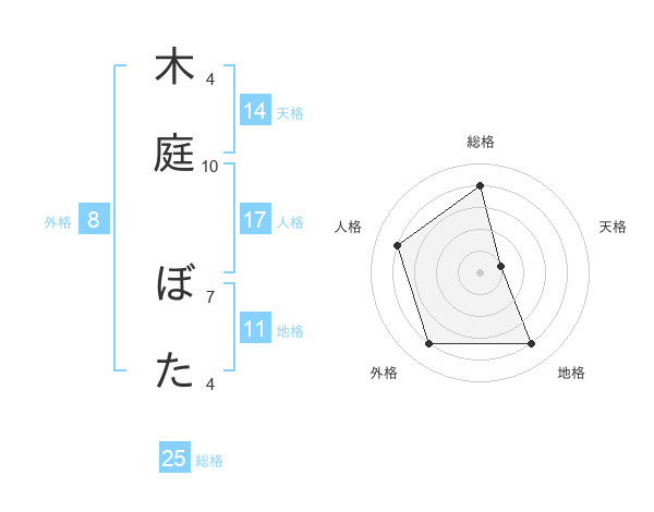 木庭 ぼたさんを姓名の画数から五運を鑑定