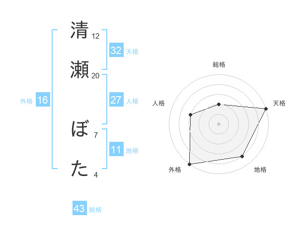 清瀬 ぼたさんの天格は32画の5点!