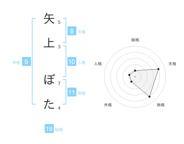 矢上 ぼたさんを姓名の画数から五運を鑑定